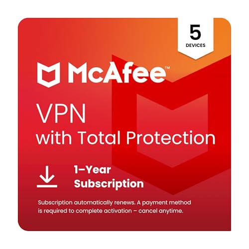 Buy McAfee VPN with Total Protection 2025 Ready | Secure Unlimited VPN 5 Devices |Antivirus and Cybersecurity Software 10 Devices |1- Year Subscription |Download: Read Software Reviews -