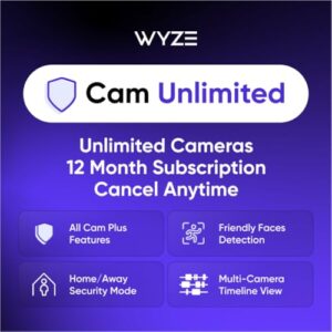 Wyze Security Plan – Cam Unlimited | Unlimited Cameras | 12 months Subscription. Full AI features | Facial Recognition for Friendly Faces | Smart Detection for Person, Pet, Package, Vehicle and Glass Break | Security Surveillance and Monitoring | Rolling 14 Days Event Video Recording | Activation Required | Cancel Anytime